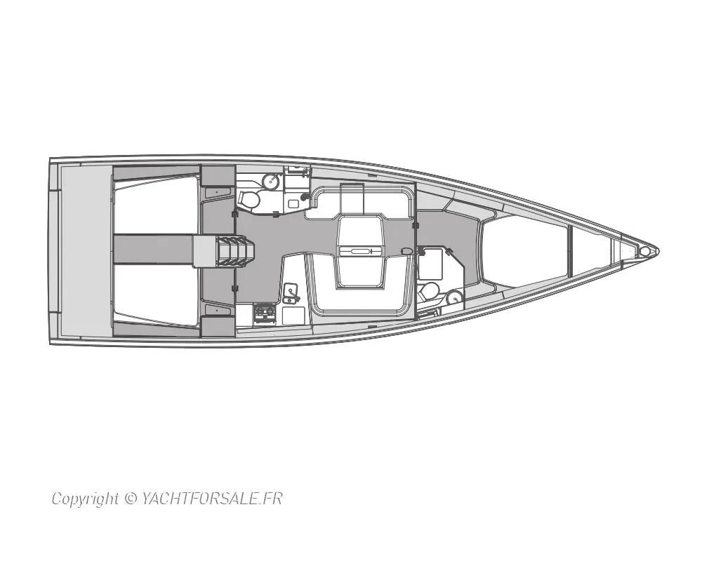 This yacht is easily sailed by a capable sailor or a couple, but really shows off when there is a full crew. The three pairs of Harken winches, located perfectly for precise trimming and unencumbered movement, were tested using a one-to-one scale model in house using an Olympic sailing team.
